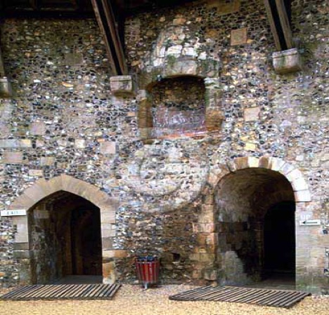Inside the Norman shell keep - above the two stone entrances in the west wall. a 'Beehive' design fireplace.