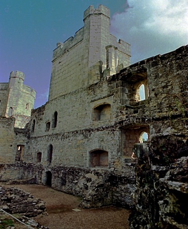 The ruined interior; halls, Chapel, East Tower and North-East Tower as viewed towards the north.