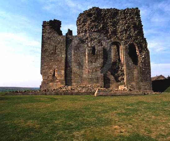 The Hall Keep viewed from the east. Note the remains of the Forebuilding and the first floor entrance.