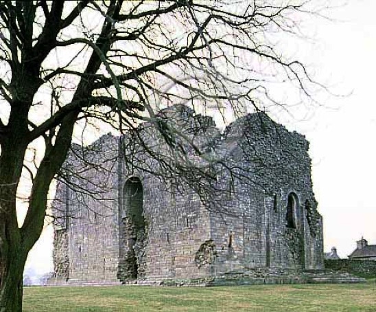 The Hall Keep from the south east. Note the foundations, remains of the Forebuilding