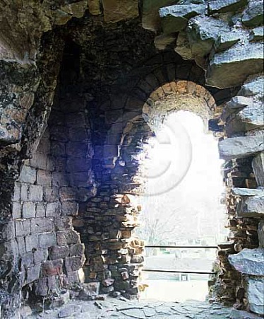 Remains of the first floor entrance and the round backed fireplace to the left.