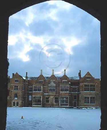 Broughton in winter: Viewed from the Gatehouse, although it is called a castle, it is largely a 16th century country house with some 14th century remains.