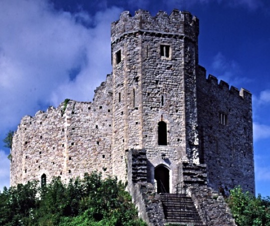 Close up of the Castle’s 12th century, twelve sided Shell Keep, part of the ruined walled steps