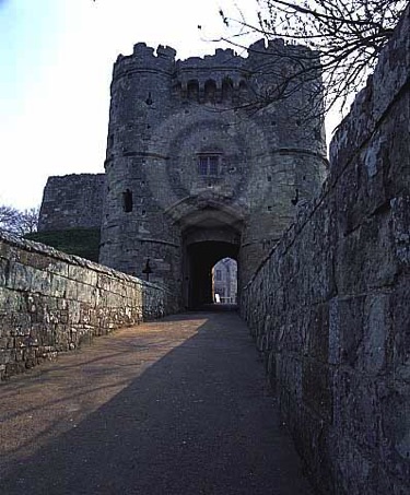 View of the stone double towered Barbican and its approach.