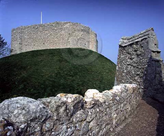 Norman 12th century Shell Keep crowning its Motte as seen from the east part of the Curtain Wall.