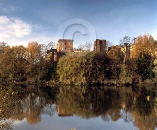 Part of the Castle complex as can be seen from the South bank of the River Dee.