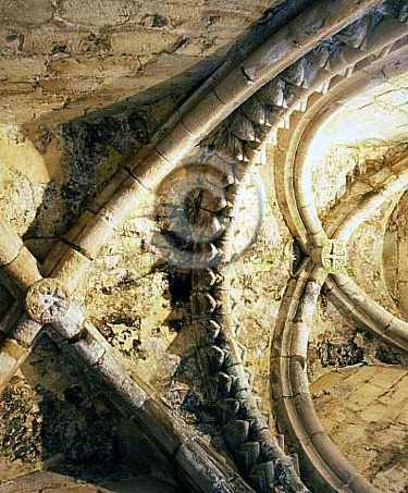 Keep's Chapel ceiling in detail. Norman carvings on the roof bosses.