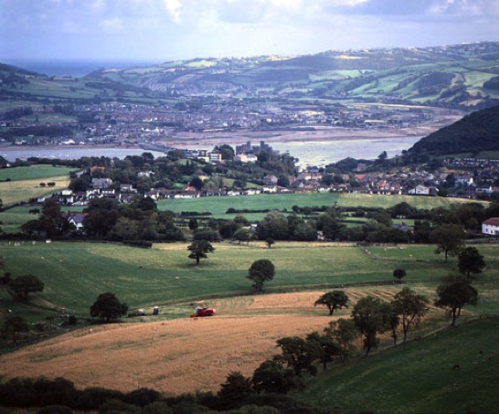 Distant Conwy, Castle and the estuary viewed from the south east.