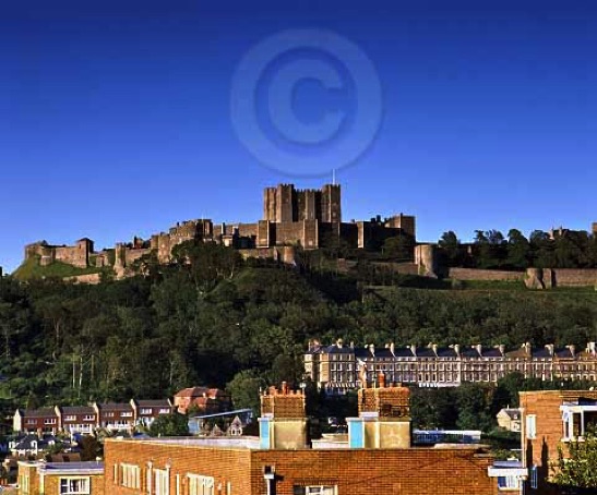 Castle complex above the town of Dover as seen from the West.