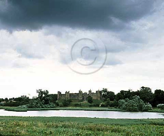 The distant Castle’s 44 ft. wall and some of its towers as seen from across its Moat.