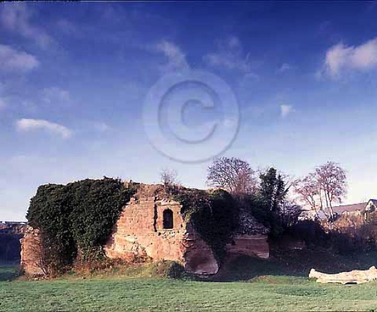 Viewed from the south, the remains of what is thought, the Postern and part of the Castle enclosure.