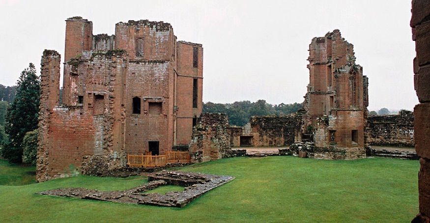 Viewed north west from the Inner Bailey; The bulding of the, Great Hall, 90ft. x 45ft. with a tower at each end, was