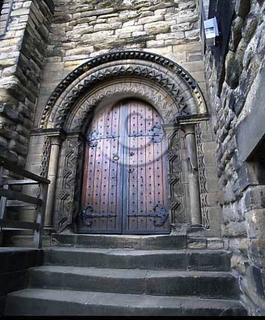 The Keep's main first floor entrance as seen within the open Fortified Forebuilding.
