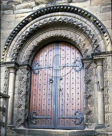 Close up view of the first floor entrance to the Keep. Note the reconstructed