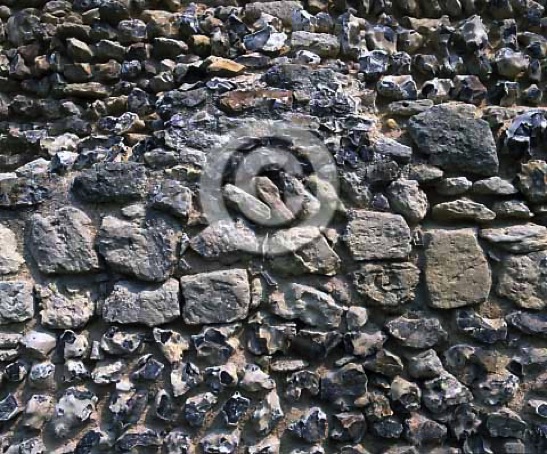 Detail of 3rd century Roman stone work in the Curtain Wall. Construction was of flint and lime mortar.