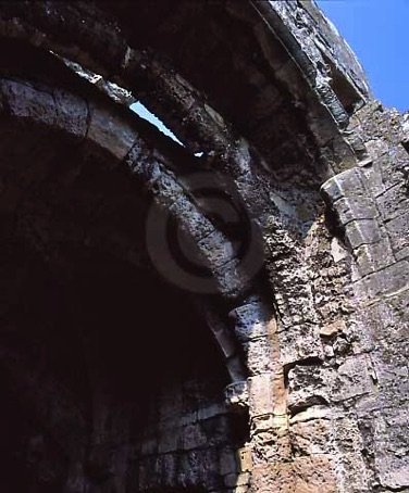 Part of the 12th-13th century Gatehouse showing the grooves for the Portcullis.