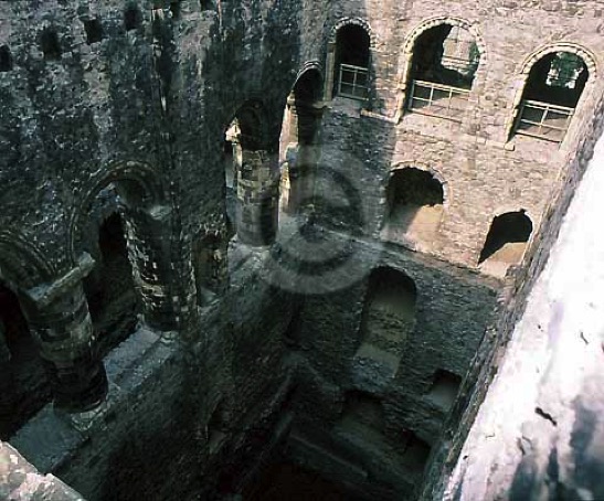 The interior viewed from the top of the castle, showing the arcading on the 2nd (principle) floor.