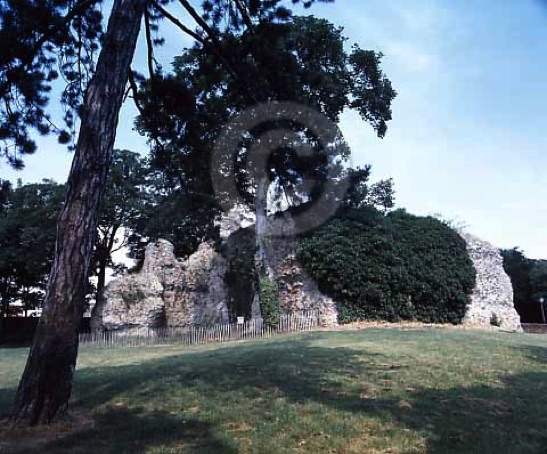 Ruins of a 12th century Norman rectangular great Tower Keep.