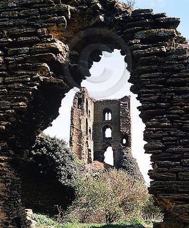 The ruined Castle’s 14th century Towered Keep, as seen through a broken arch.