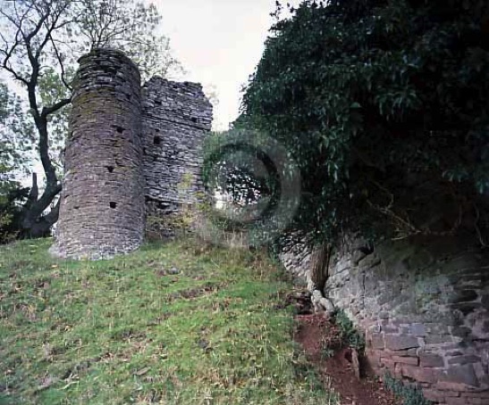 Remains of a narrow Drum Tower and Curtain walling.