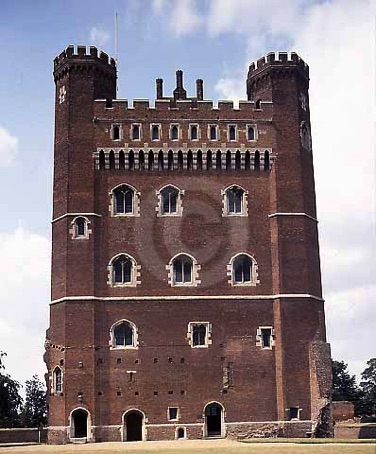 Viewed from the east, this red brick Towered Keep was built c 1440 with bricks made from local clay.