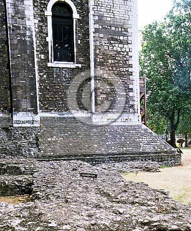 In the foreground, remains of the Coldharbour Gate base c.1240.