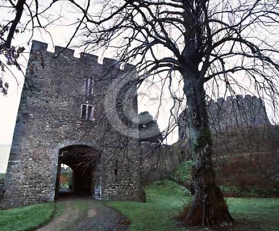 13th century Tower Gatehouse and in the distance a 12th century Shell Keep.