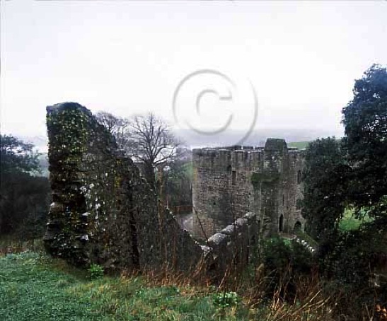 View from inside the Curtain Wall that extends down the Motte to the 13th century Gatehouse.