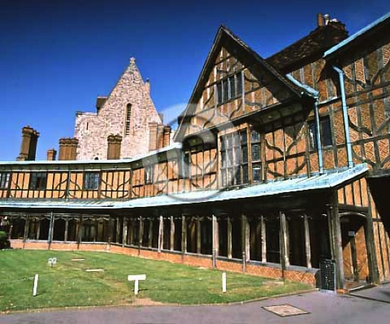 View of part of the 15th century 'Houseshoe Cloister'. In the background is the rear view of